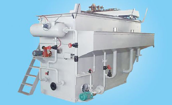 氣浮機主要用于固—液或液—液分離。通過溶氣和釋放系統在水中產生大量的微細氣泡,使其粘附于廢水中密度與水接近的固體或液體微粒上,造成整體密度小于水的狀態,并依靠浮力使其上升*水面,從而達到固—液或液—液分離的目的。